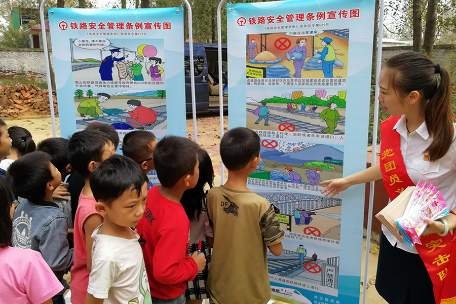 活動中,宣傳人員采取發(fā)放宣傳資料、現(xiàn)場講解、宣傳板塊展示、播放宣傳片、有獎互動等方式,形象生動地為大家介紹鐵路法律法規(guī)知識,對有關(guān)愛護(hù)鐵路、保護(hù)自身安全的常識和日常生活中發(fā)生的真實案例進(jìn)行了細(xì)致講解,結(jié)合事故案例對鐵路運輸、村民、穿越刺繩防護(hù)網(wǎng)對學(xué)生人身安全造成的嚴(yán)重危害進(jìn)行了深入宣講。