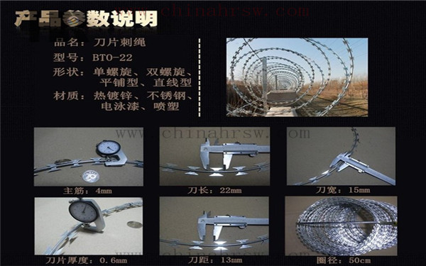 刀片刺繩按照安裝方法不同可分為:(蛇腹式) 螺旋式刀片刺繩,直線型刀片刺繩,平板式刀片刺繩,刀片刺繩焊接網(wǎng)等。片刺繩按照安裝方法不同可分為:(蛇腹式) 螺旋式刀片刺繩,直線型刀片刺繩,平板式刀片刺繩,刀片刺繩焊接網(wǎng)等。